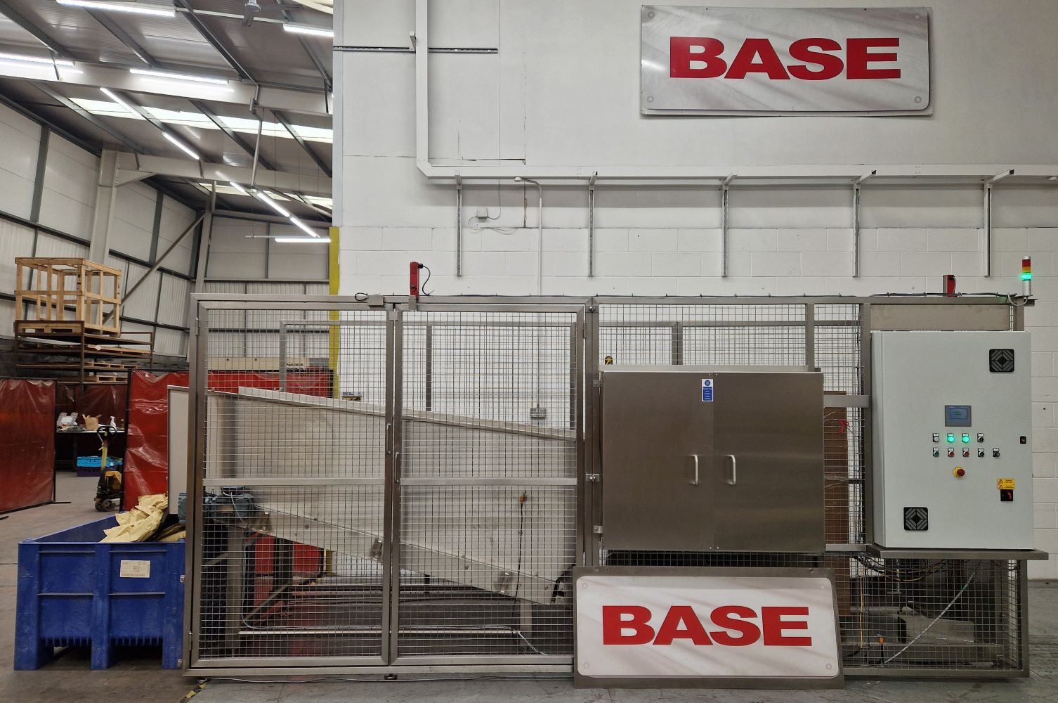 - There is a photo sensor inside the safety enclosure that senses that the Roll Cage or Pallet Box is loaded correctly before the container can be tipped